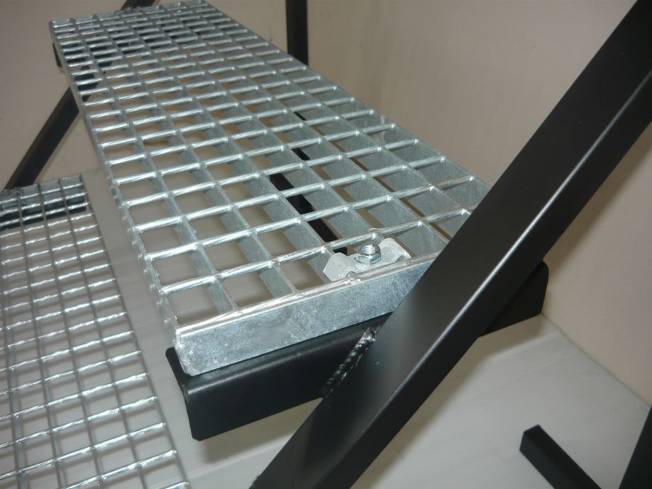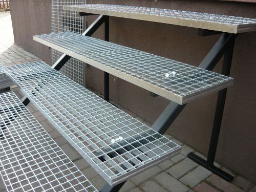 Pohodni podesti, pohodne mreže in stopniščne rešetke (KOZ - SOZ) za zgornjo in bočno pritrditev, v široki paleti različnih dimenzij. Velikost okenca 34*38 oziroma po naročilu tudi 33*11 ali 33*33.