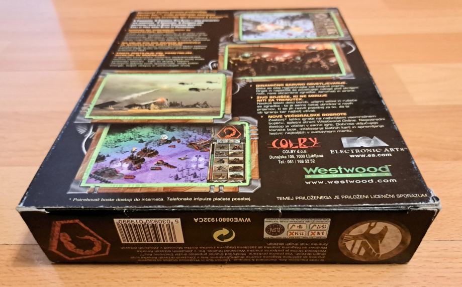 Legendarna igra Command & Conquer : Tiberian Sun BIG BOX, s slovenskimi navodili, prav tako je priložena dodatna knjižica z navodili, kar je danes zelo redko.