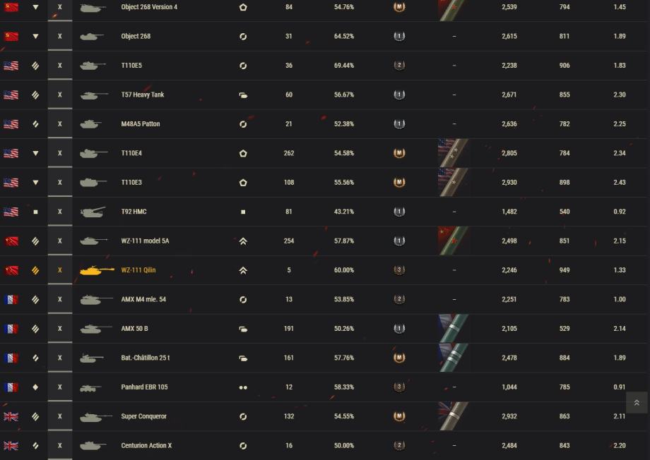 WORLD OF TANKS / WOT RAČUN - OBJ. 279e, 907, 260, VK72.01K, QILIN