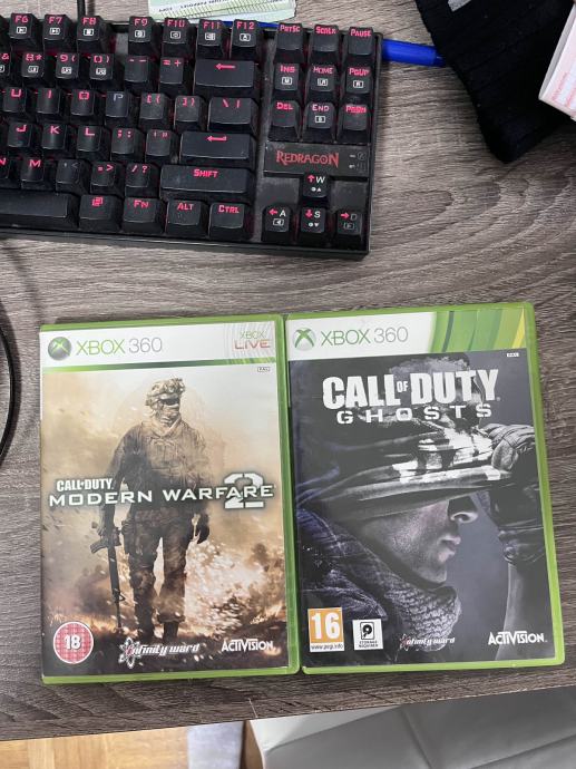 Prodam 2igri za XBOX360 Call of Duty Ghosts in pa Call of Duty Modern Warfare2. Obe igri lahko igrate tudi na novejsih xboxih. Za vec informacij me pa kontaktirajte na tel. stevilko 069719359