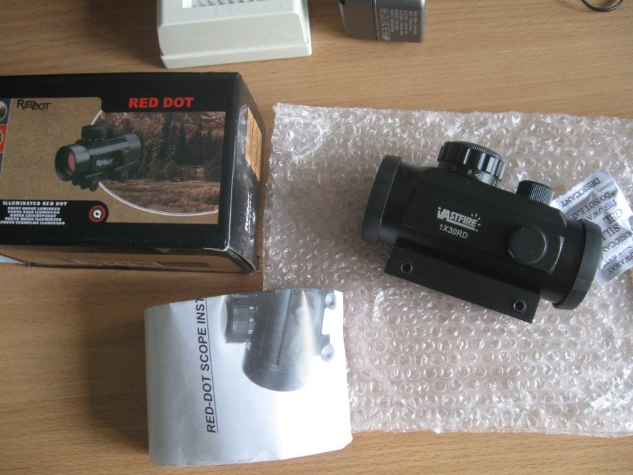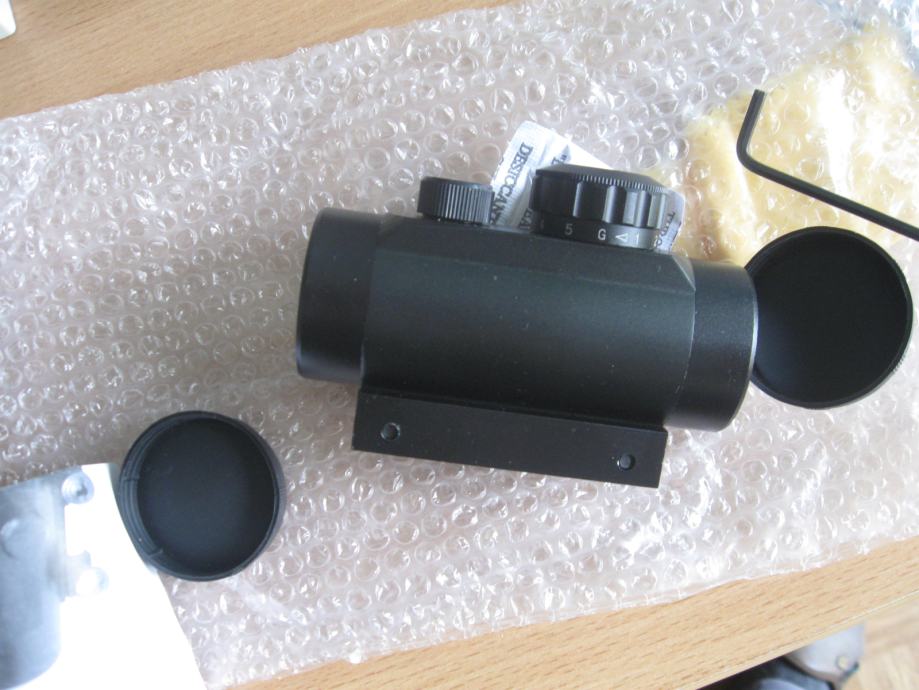 Red Dot, Rdeča pika je nerabljena. Stara je kakšno leto dni, je delujoča, pakirana je v originalni embalaži. Paše na šino 11 mm in 24 mm.