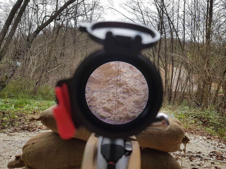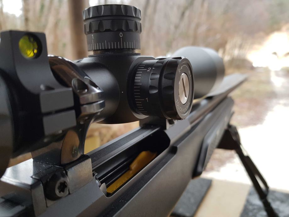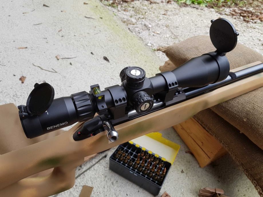 Strelski daljnogled Benemo 5-25x50, v prvem fokalnem planu (FFP), MIL/MIL, 20MIL hoda po višini, tuba 30mm, osvetljen križ, s pokrovčki Butler Creek in stransko libelo. Testiran na T3 v .223 in .260REM, deluje- tracka odlično (slika).