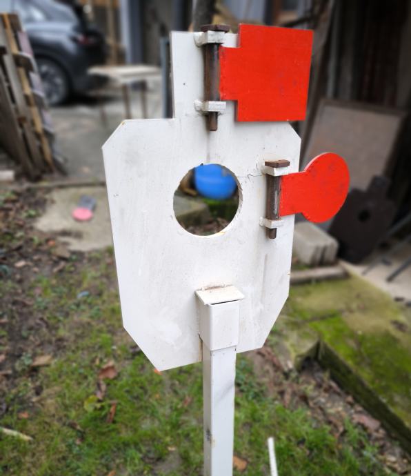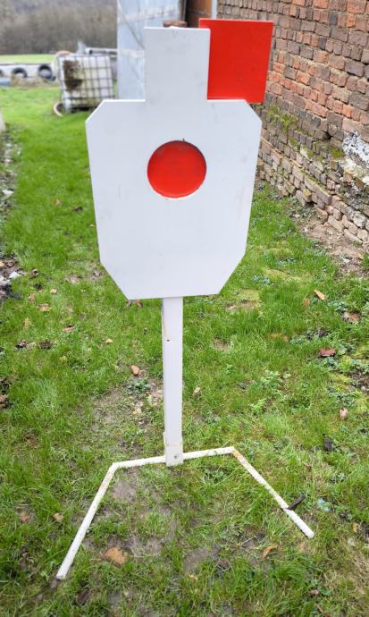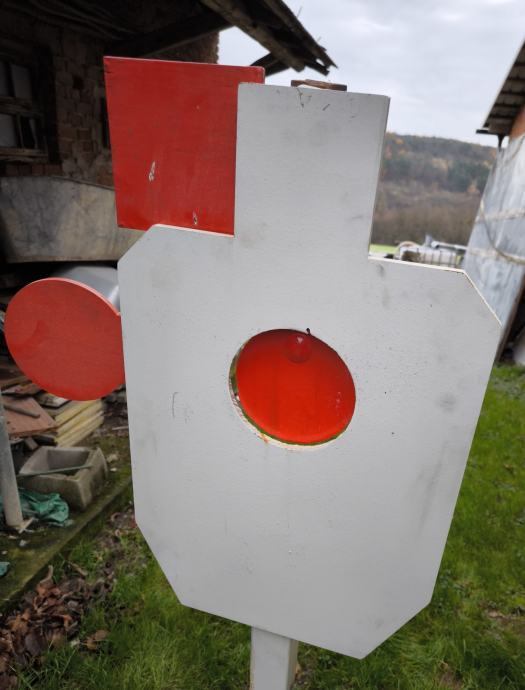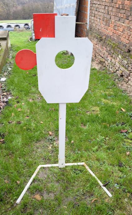Prodam človeško silhueto gong za streljanje. Gong ima dve platki ki se ob zadetku obračate levo ali desno. Platke so premera 150mm in 8mm debele iz hardox materiala in so primerne za pištolske naboje, silhueta je iz 12mm hardoxa in zdrži tudi puškovne naboje. Zraven je en sredinski gong 12mm hardox za streljanje z puško.