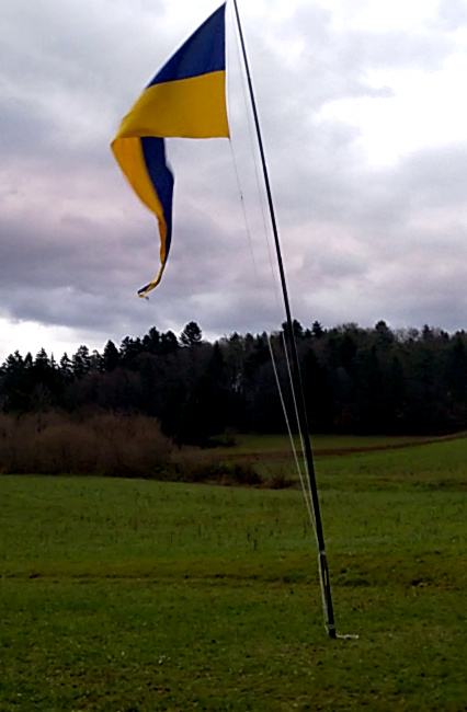 - zastava dimenzije 4×1,5m iz tkanega poliestra teže 156g/m² (po specifikacijah iz trgovine naj bi bilo 185g/m²), privezana na vrvico za dvigovanje in spuščanje, barva modra nad rumeno, vrvica speljana skozi oko na vrhu droga za postavitev - tako kot mora biti po F-Class pravilih;