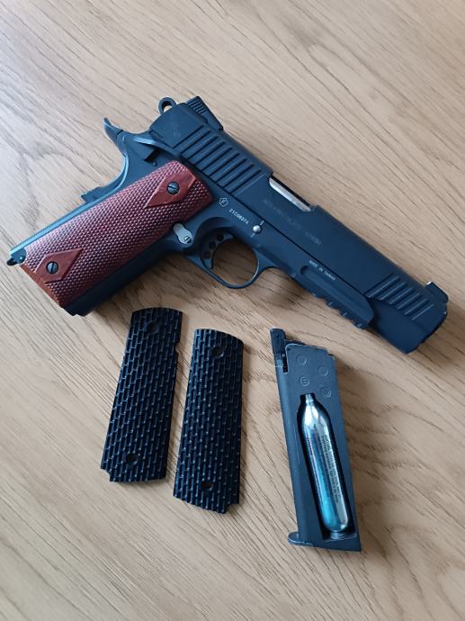 Prodam zelo kvalitetno plinsko pištolo Swiss Arms kalibra 4.5mm. Ima blowback in je v celoti kovinska. Izhodna hitrost je prib. 100 m/s
