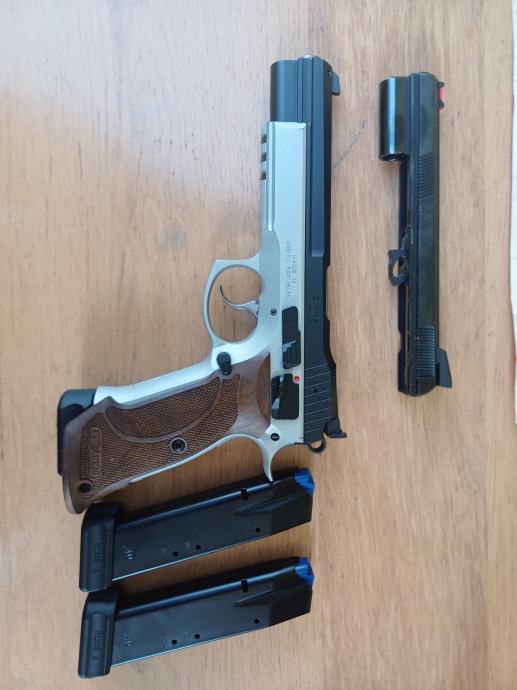 Običajen zaklep še ni bil streljan. Precizni zaklep cca. 300 nabojev. Pištola kot nova. Model duotone v krom dražji izvedbi. Pištola deluje odlično tako v smislu delovanja in preciznosti. Žal nimam časa za tekmovanja in jo prodajam. Potrebna dva nabavna dovoljenja in sicer eno za zaklep in drugo za pištolo. Z orehovim ročajem pro armis in dodatnim kovčkom.