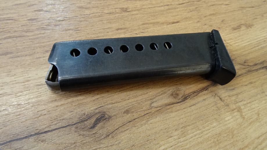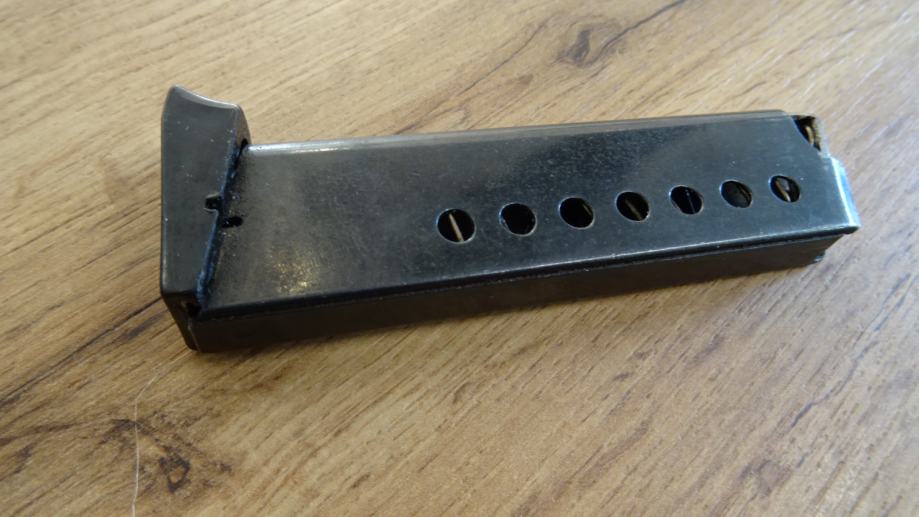 Prodam zelo redek rezervni originalni tovarniški nabojnik za zgoraj omenjeno pištolo v kalibru 7,65 mm. Kot nov, brez sledi uporabe, slike povedo vse