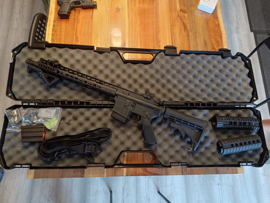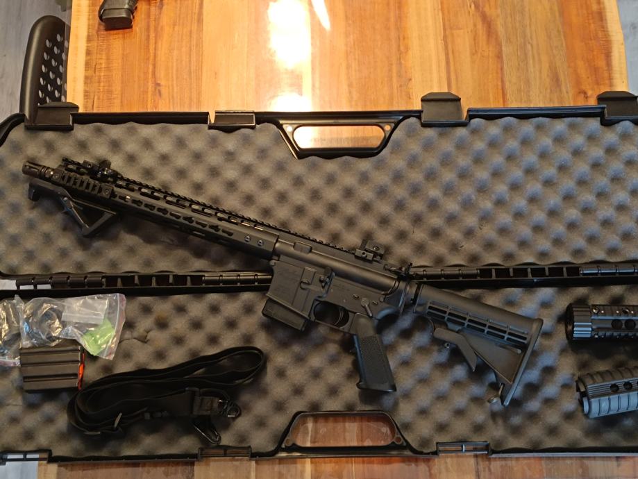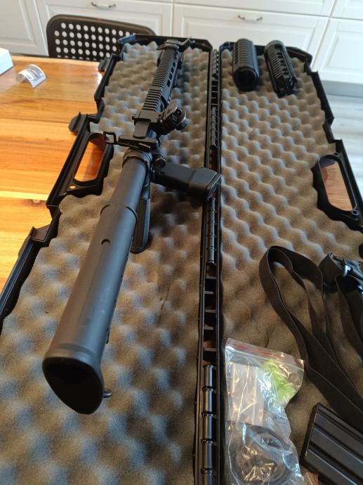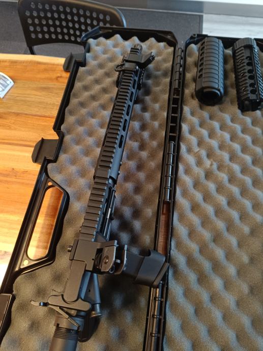 Izredna kakovost, cev je 14.5” Heavy Profile z 1 in 7” – Right Hand Twist, kar je odlično za stabilizacijo daljših težjih kuel. Puška je bila v prvotnem, kupljenem stanju klasična M4, dokupljen kopišček in so vsi deli iz prve verzije M4 priloženi. Izvirna slika je tudi priložena.