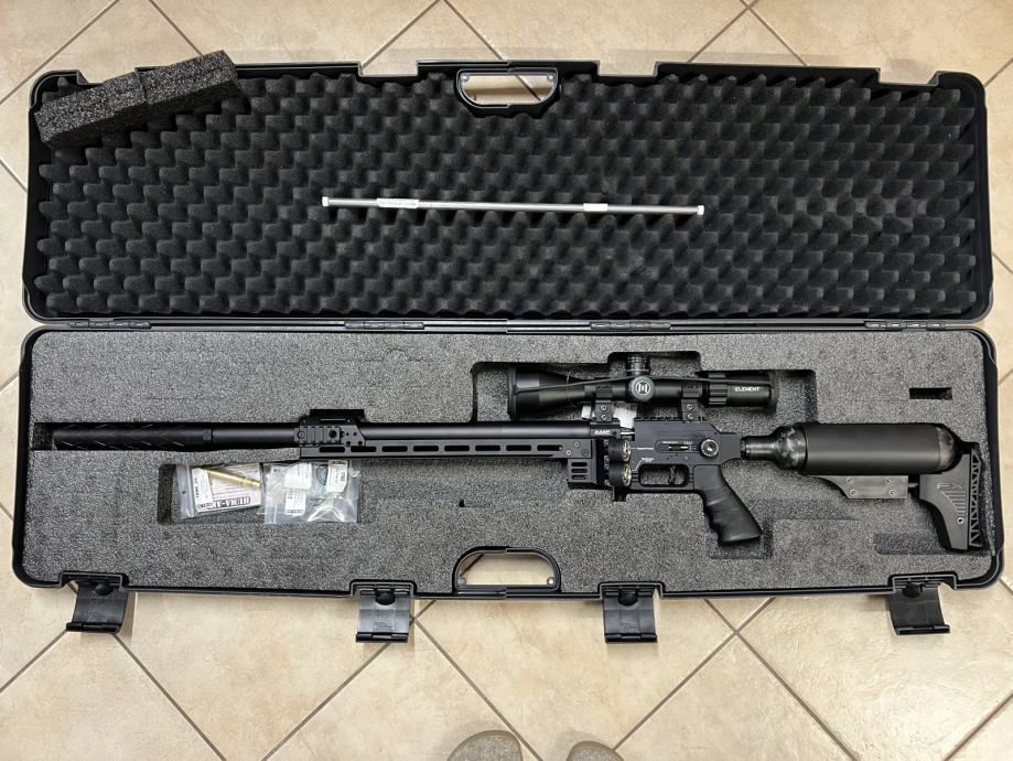 Prodam PC zračno puško FX dynamic .25 cal. Prodam kot novo puško katera je bila samo preizkušena cca 20-30 strelov. Prodam zaradi tega ker je ne bom uporabljal. Puška je v trgovini prirejena za streljanje slugov. Torej za močnejše projektile. (cca 90J). Zraven je še radar za merjenje hitrosti projektilov z piccatiny šino in po možnosti daljnogled. Z daljnogledom je cena 2700 evrov. Daljnogled je nov Element Optics Helix HDLR 2-16×50 APR-1C (SFP)