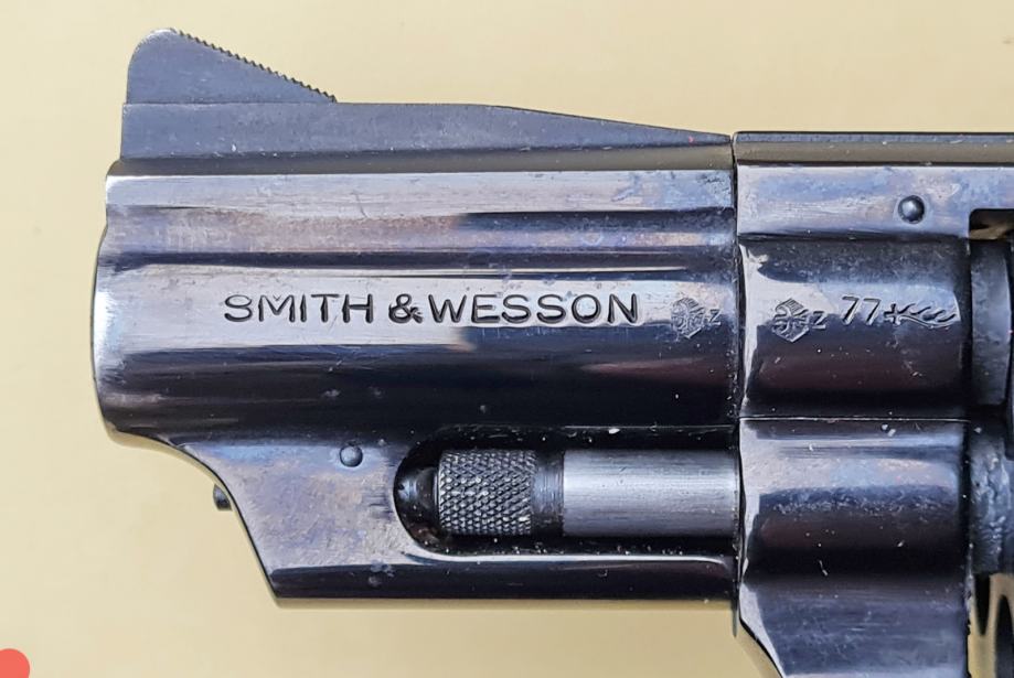 Prodam odlično ohranjen revolver Smith & Wesson model 19 »Combat Magnum« kalibra .357 magnum, gumijasti ročaj Pachmayr.