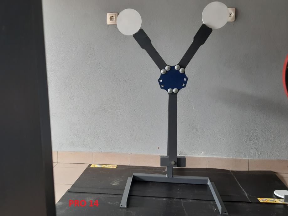 Pro 14 - Falling plate. S pomočjo Popperja aktiviramo tarčo, ki se začne premikati (dva kovinska loparja).