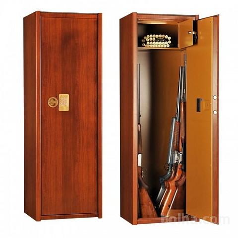 Omare so narejene iz jeklene pločevine debeline 3mm, vrata 4mm (celotna debelina vrat 5cm), zaklepanje z elektronsko kombinacijsko ključavnico, predpriprava za sidranje v tla in steno, barvane v imitacijo lesa.