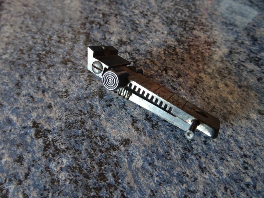 Zelo zelo redko za dobiti!Prodam originalen zadnji merek za malokalibersko puško. Merek je zelo star, popolnoma izspraven, vse nastavitve delujejo in je kot nov!Menjam samo z lovcem za lovsko strelivo po dogovoru (z orožnim listom seveda)!Info na 068-177-526 mail staralesina@gmail.com