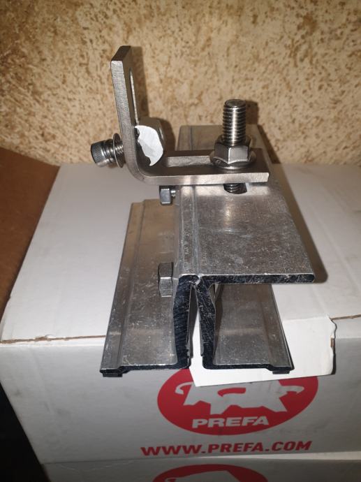 Prodam 42x nosilec Prefa za montažo letev solarnih nosilcev na ravno streho Prefa ali podobne kovinske konstrukcije.