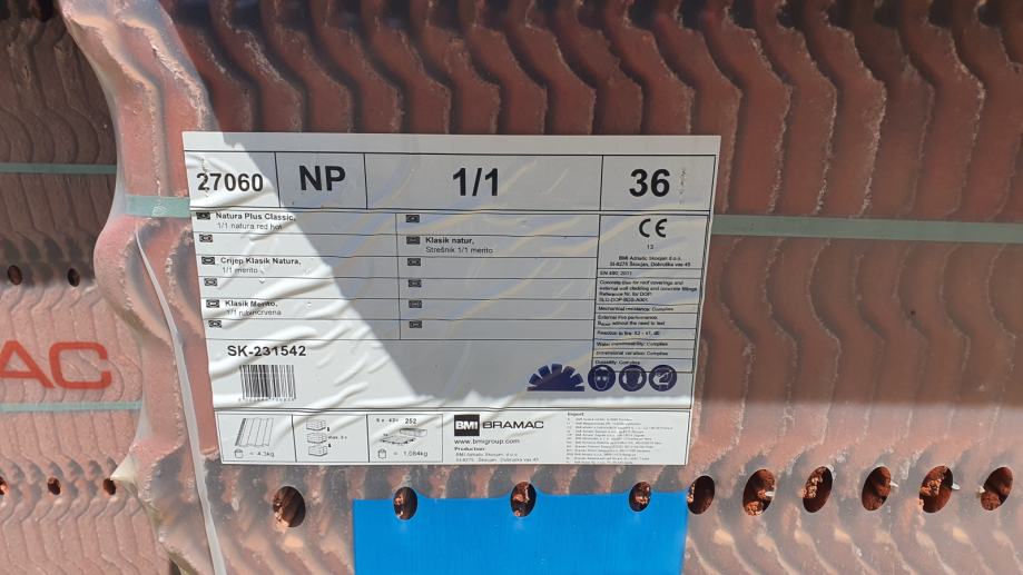 Prodam nove, neuporabljene, še zapakirane strešnike Bramac, Klasik Natura Merito (571 kosov strešnikov 1/1), na treh evro paletah. Standard "EN 490".