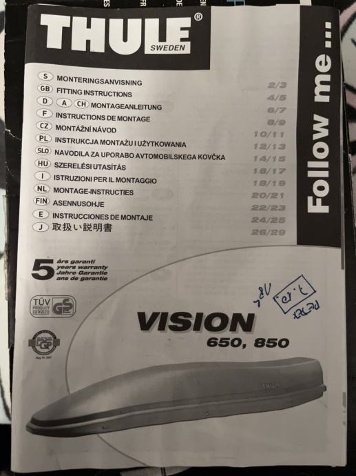 Prodam ohranjen in garažiran strešni kovček Thule Vision 850.
