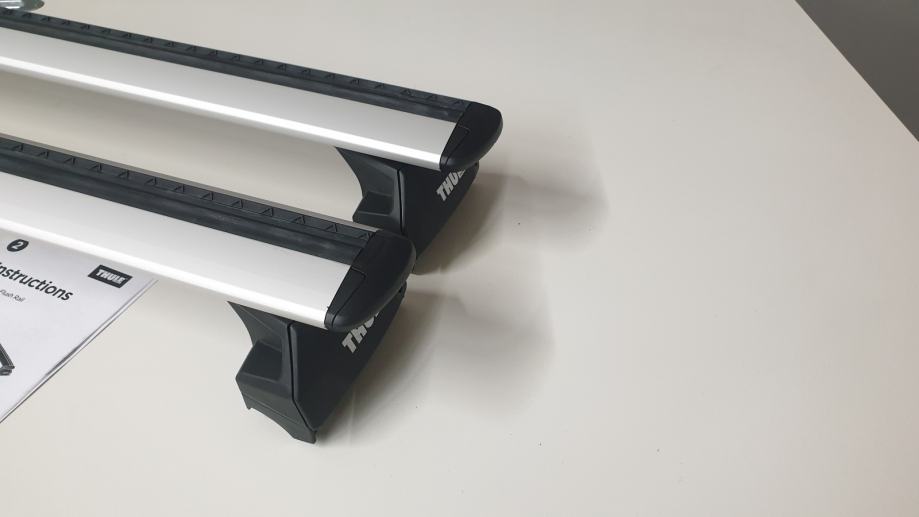 Komplet je sestavljen iz rabljenega pritrdilnega kita Evo 186011, rabljenih nog Evo 7106 in novih prečk Wingbar Evo v srebrni barvi