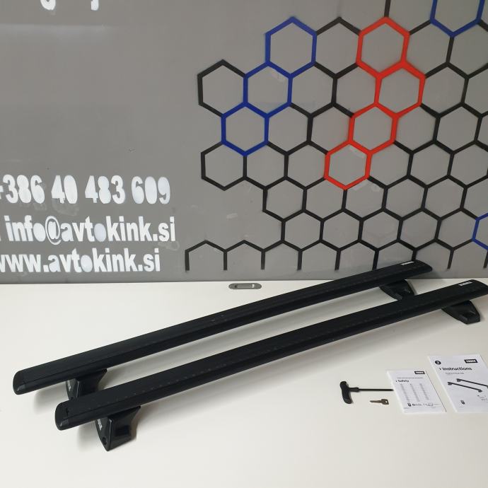 Komplet je sestavljen iz rabljenega pritrdilnega kita Evo 186072, nog Evo 7106 in novih prečk Wingbar Evo v črni barvi