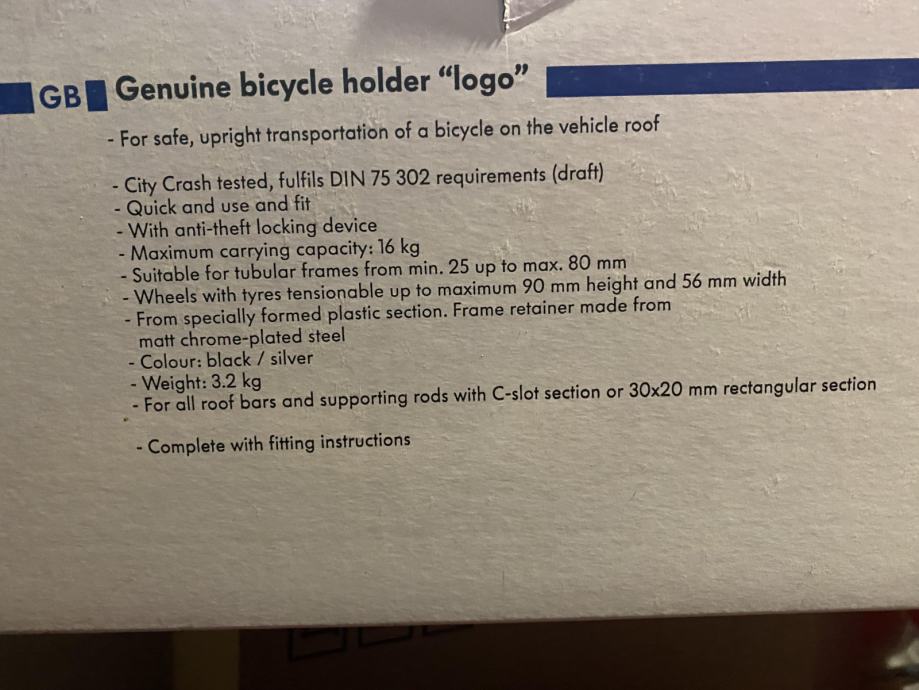 Prodam praktično 2 nova strešna nosilca za kolo, univerzalna, še v original škatli in z navodili.