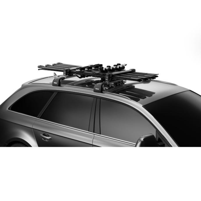 Olajšajte si zimsko potovanje z aerodinamičnim in kakovostnim nosilcem smuči Thule Snowpack S, ki je primeren za prevoz različnih tipov smuči.