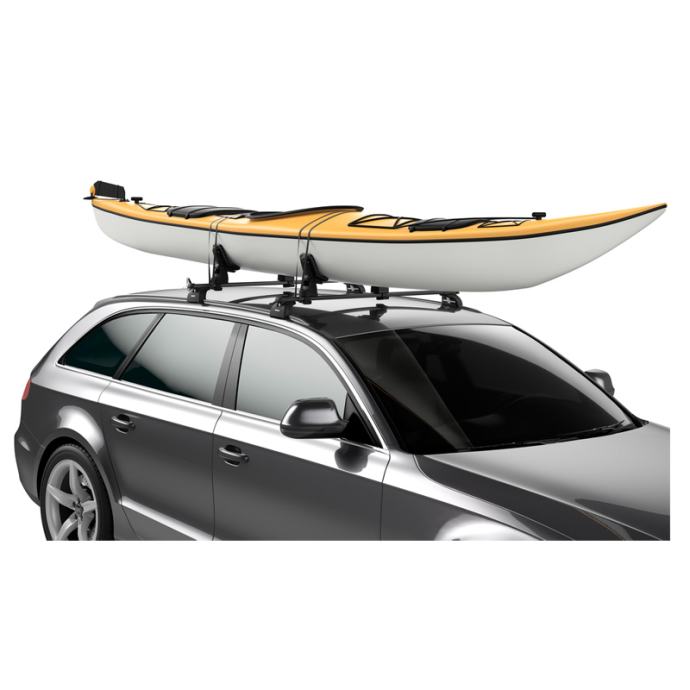 Zagotovite vašemu kajaku, sup-u ali surfu varen in enostaven prevoz z Thule DockGrip nosilcem. Novi Grip vrtljivi ročaji se prilagajajo različni velikosti in ščitijo kajak med potovanjem. Enostavna namestitev s pritrditvenimi trakovi z zaponkami. Primeren za prevoz kajaka, surfa ali manjšega čolna do 90 cm širine.