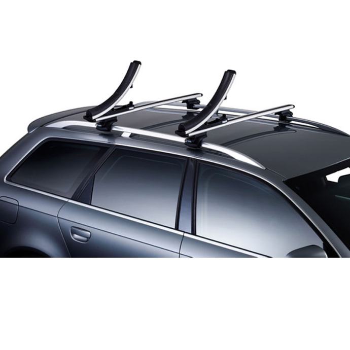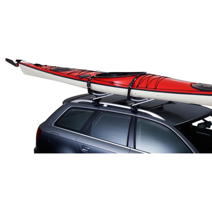 Kakovostni nosilec Thule K-Guard omogoča varen prevoz kajakov in je popoln za daljša potovanja. Omogoča preprosto in varno pritrditev kajakov različnih dimenzij in oblik s priloženimi trakovi. Njegova oblika enostavno nalaganje in izjemno prilagoditev različnim oblikam kajakov. Nosilec je zaščiten s peno in gumijasto podlogo, kar ščiti tako kajak kot vozilo. Nosilec je mogoče zakleniti na prečke, prav tako kajak na nosilec, kar zagotavlja varnost vašega kajaka in nosilca tako med vožnjo kot v mirovanju.