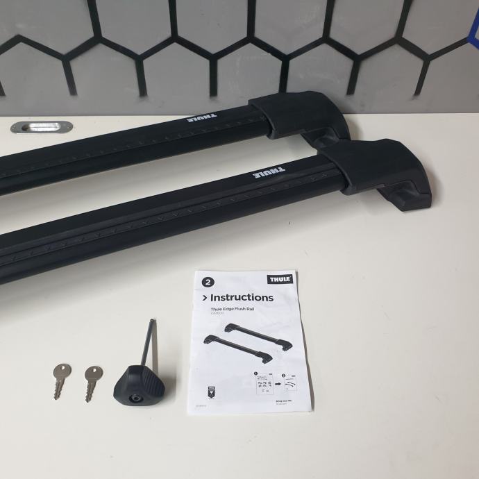 Ponudba vsebuje rabljen pritrdilni kit Evo 186058, rabljene noge Evo Edge 7206 in rabljene prečke Wingbar Evo Edge v črni barvi