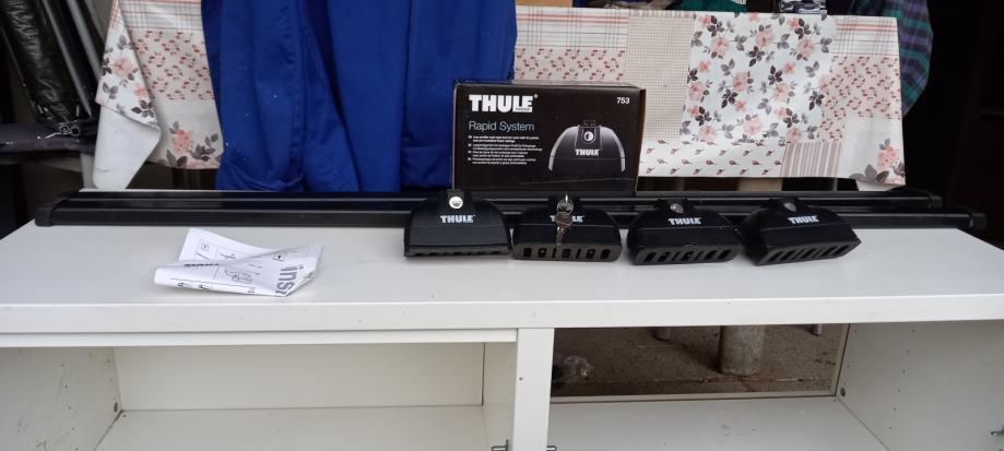 Prodam zelo malo rabljene, odlično ohranjene nosilce za strešni kovček za avto znamke Thule, model rapid system 753. Cena kompleta je 250€