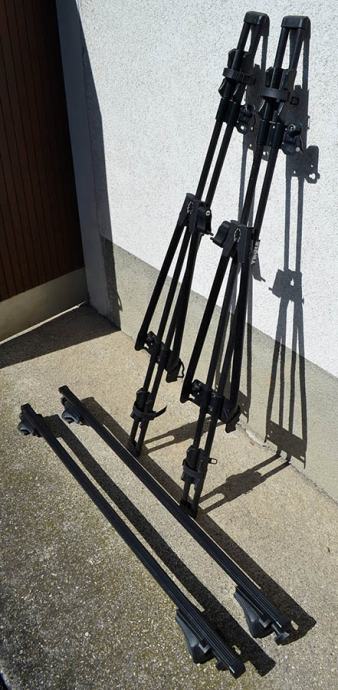 Prodam zelo dobro ohranjene strešne nosilce (osnovne palice/noge) švedske znamke Thule, s pripadajočimi ključavnicami in ključi. Uporabljeno na vozilu Nissan Qashqai. Nosilci za kolesa (na sliki) so že prodani.