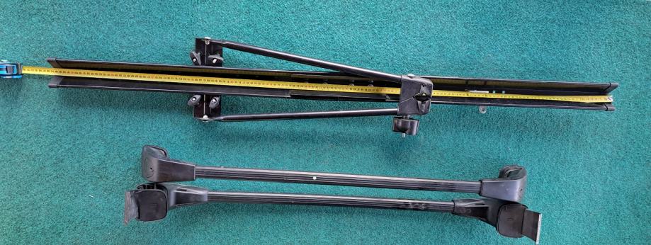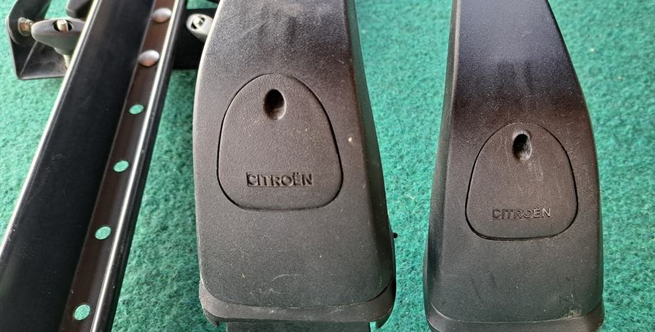 Prodam kovinski strešni nosilec dolžine 100cm, znamka Citroen, plus nosilec za kolo dolžine 145cm.