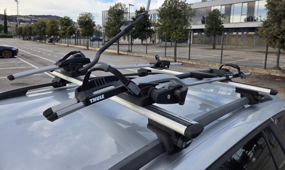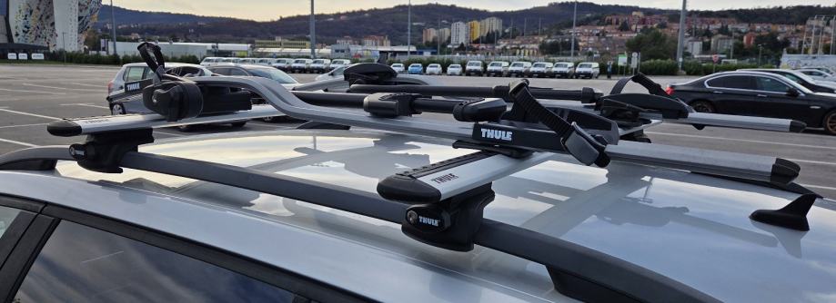 Zelo lep komplet za karavan Škodo Octavio 3 in Passat b7 b8. Thule 598 zelo varen nosilec. 2 seta ključev.