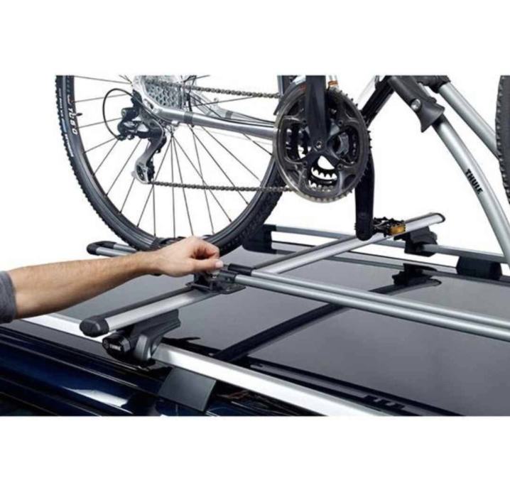 Kolo se zapahne na nosilec za kolesa, nosilec se zapahne na strešne nosilce (ključavnice vključene)