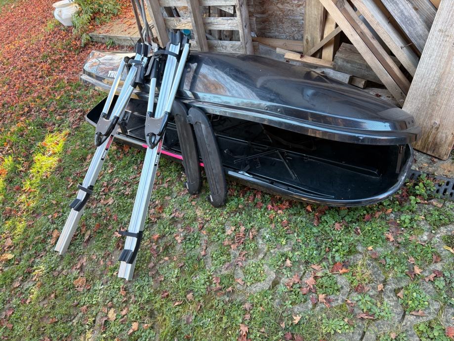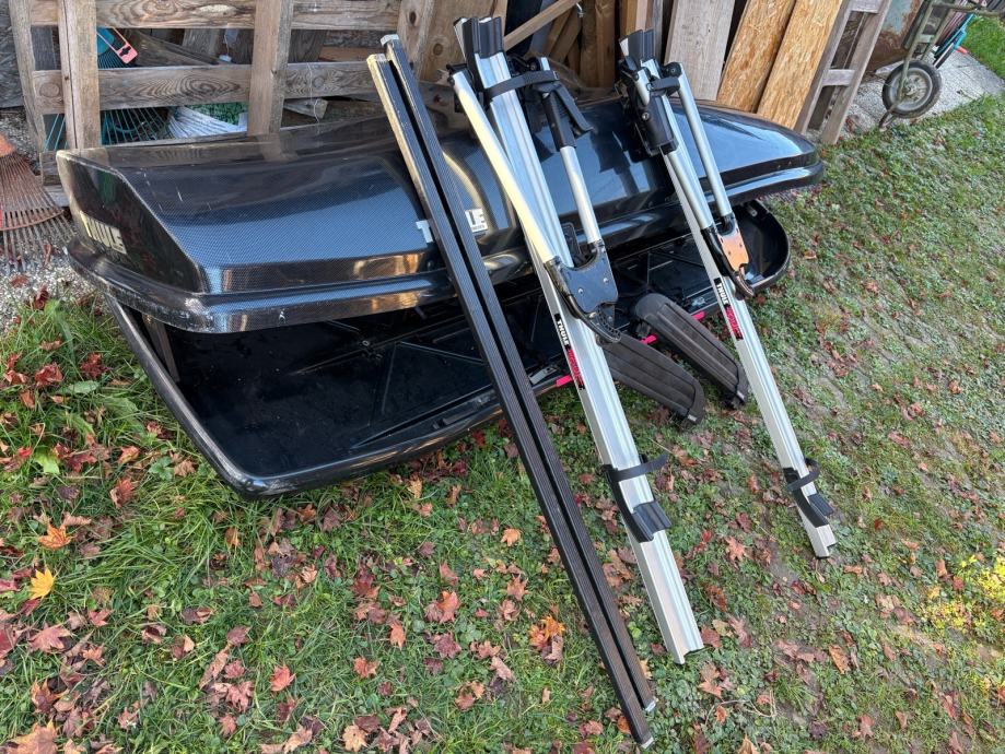 2x nosilec za smuč, za 2 para, s ključavnico. Dodamo še dve nosilni palici brez ključavnic.
