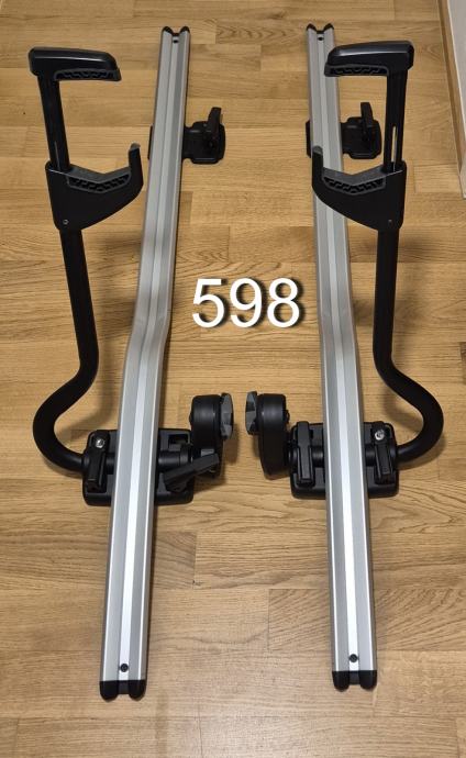 Prodam zelo lepo ohranjene strešne nosilce za kolesa (uporabljeni le nekajkrat na krajše razdalje), in sicer 2 nosilca Thule ProRide 598 in 1 nosilec Thule ProRide 591. Vsi nosilci so srebrne barve. Priložena po 2 originalna ključa za zaklepanje vsakega nosilca.