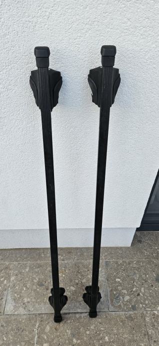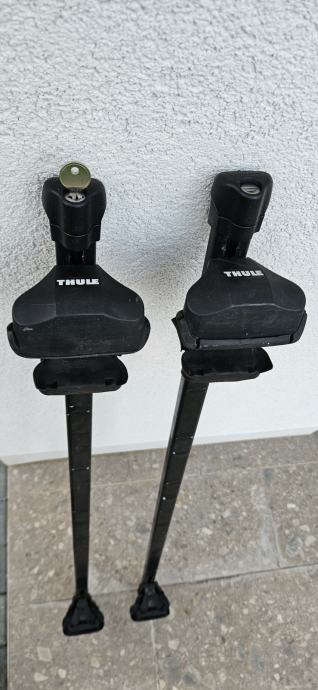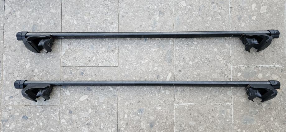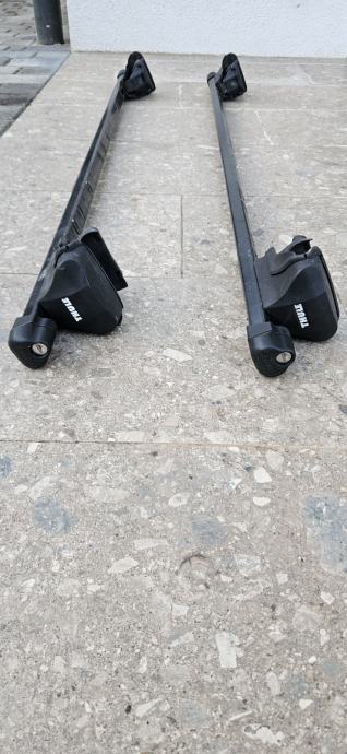 Prodam strešna nosilca THULE SquareBar z adapterji in ključem za pritrditev na strešne sani vozila. Nosilci so dolžine 135 cm in so primerni za karavane in enoprostorce.