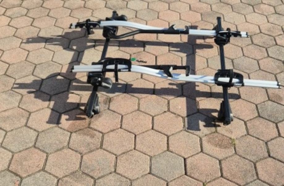 Prodam dobro ohranjene Thule strešna nosileca za avto s sanmi. Prečki sta z zaklepanjem, dolžina prečk 127 cm oziroma z razponom od 102 cm do 120 cm. V kompletu tudi prodam prav tako dobro ohranjena Thule nosilca za kolesa z zaklepanjem na ključ. V kompletu prodam po ceni 220 eur. Robi 031 682347