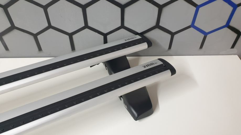 Komplet je sestavljen iz rabljenega pritrdilnega kita 141648, rabljenih nog rapid 754 in novih prečk Wingbar Evo v srebrni barvi.