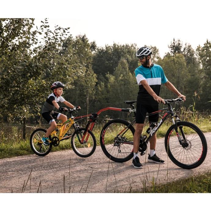Kvalitetni vlečni drog TRAIL ANGEL nudi varno in zanesljivo kolesarjenje z vašim otrokom. Namesti se enostavno na vaše kolo in kolo vašega otroka. Prilagaja se vsem okvirjem koles. Drog je zložljiv in zavzema zelo malo prostora in je kot nalašč za družinska potovanja.