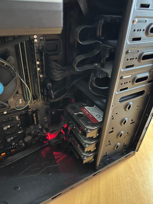 Ohišje in matična plošča v tej konfiguraciji podpira 6 diskov (1x boot drive + 5x HDD). Cel pc primeren za HDD diske do 5x 4TB ali 5x 8TB.