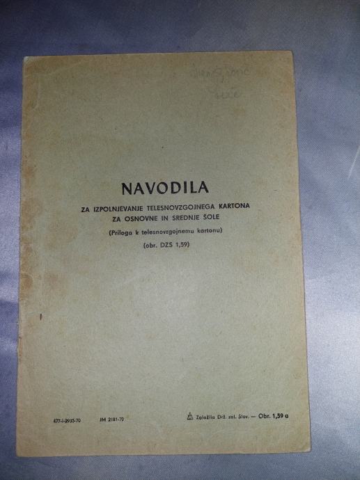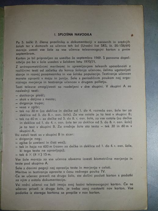 NAVODILA ZA IZPOLNJEVANJE TELESNO VZGOJNEGA KARTONA ZA OSNOVNE IN SREDNJE ŠOLE (Priloga k telesnovzgojnemu kartonu). Izdana v 1970 letih.
