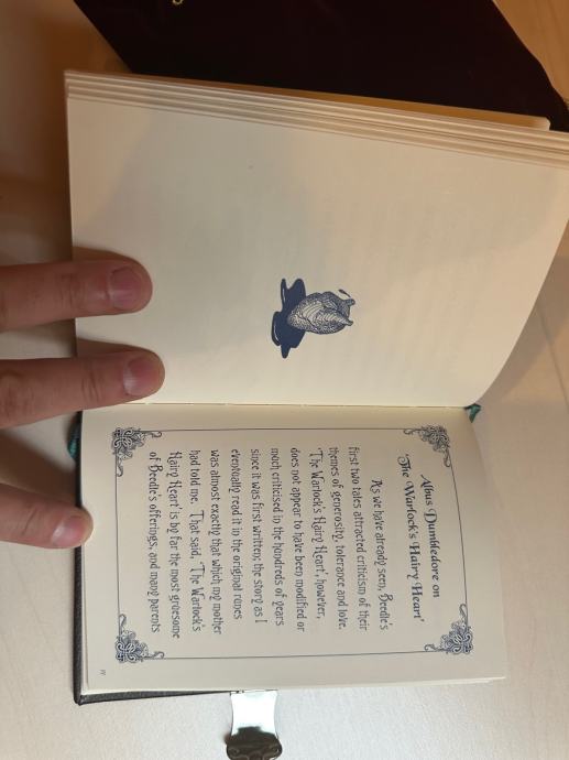 Prodam zbirateljsko kupljeno in hranjeno The Tales of Beedle the Bard, Collector's Edition. Znaki uporabe so na beli zaščitni platnici okoli večje knjige, kot razvidno iz slik.