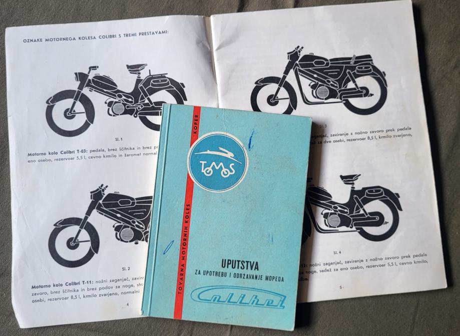 Prodam Tomos knjizico z navodili. Zraven dam se eno knjizico prav tako z navodili in specifikacijami motornega kolesa tomos colibri. Druga knjizica je brez prve platnice zato jo dajem zraven.
