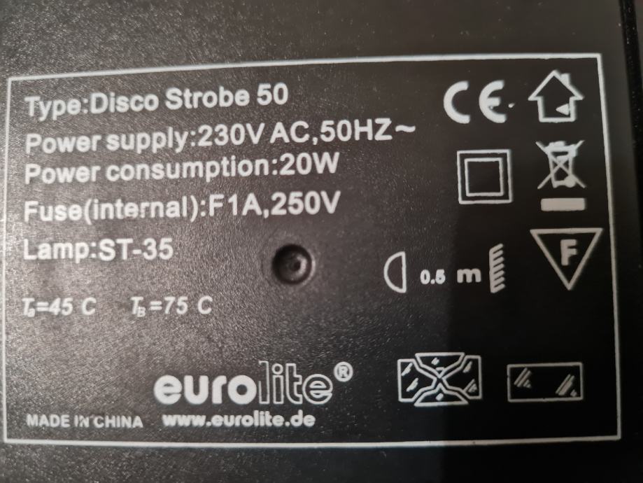 Prodam delujočo ohranjeno bliskavico Eurolite Disco Strobe 50. Ima nastavljivo bliskanje (1-10 utripov/sekundo). Primerna za manše prostore.
