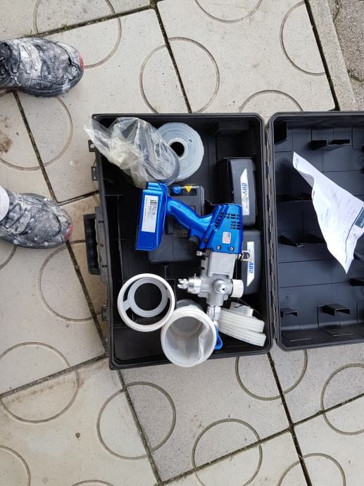 PRODAM AKUMULATORSKO PIŠTOLO ZA BRIZGANJE BARV, EPOKSI MAS, SMOL...GRACO XFORCE HD. VELJA ZA NAJZMOGLJIVEJŠO TOVRSTNO PIŠTOLO. JE REDNO SERVISIRANA NA GRADBENEM SERVISU LORENČIČ, DODAM KAR NEKAJ DODATNE POTROŠNE OPREME V VREDNOSTI CCA. 200€( LONČKI, POKROVČKI... ) . PRODAM ZARADI NEUPORABE. 2X BATERIJA. NAPIŠEM TUDI RAČUN 800€+DDV. CENA NOVE CCA 2500€.MOŽNE MENJAVE