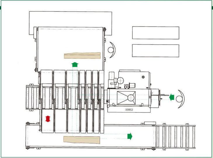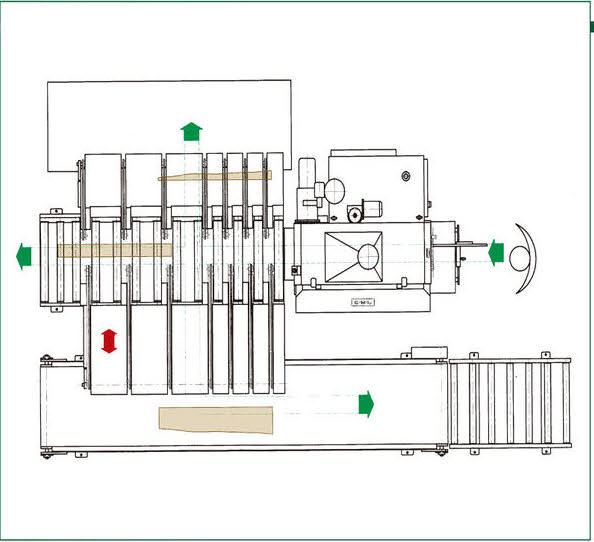 Transporterje lahko priklučimo že na obstoječe robilnike ali večlistne cekularje ker merjenje poteka ločeno od robilnika ali večlistnega stroja tako, da linija deluje čisto samostojno. Ločevalni transporter lahko ločuje stransko robo, ki pride pri razrezu ali robljenu deske, ki jo izmeče iz delovnega traka lahko del obdelovanca avtomatsko vrne operaterju. Stroj lahko poljubno izmeče deske: