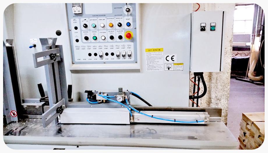 Pnevmatska podajalna naprava z vračanjem lesenih elementov. Linija sestoji iz treh elementov, in sicer: