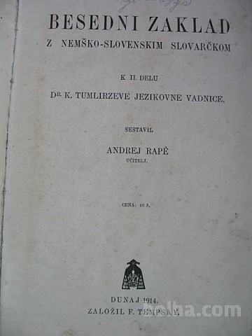 ANDREJ RAPE:BESEDNI ZAKLAD Z NEMŠKO-SLOVENSKIM SLOVARČKOM