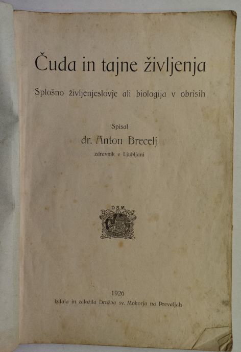 Naslov Čuda in tajne življenja : splošno življenjeslovje ali biologija v obrisih / spisal Anton Brecelj