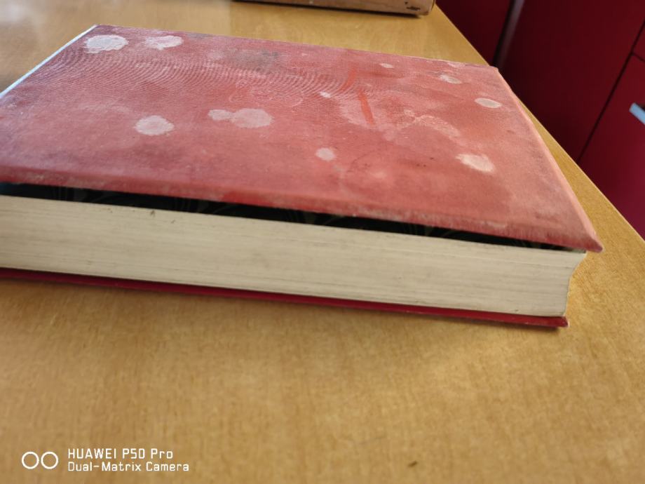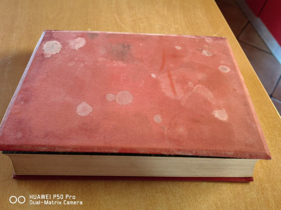 Knjiga je bila na vlagi in se pozna na zadnji platnici,notranjost knjige je ok (glej slike) ,ima pa malo vonja po vlagi in je malo zvita