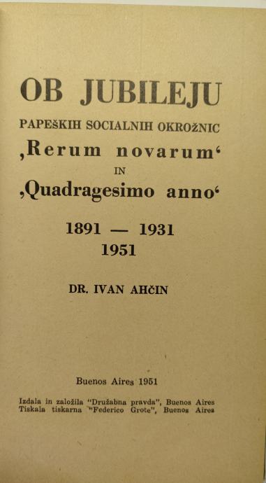 Ivan Ahčin, Ob jubileju papeških socialnih okrožnic, 1951